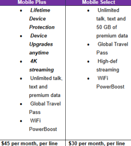 - Two plans: Mobile Plus and Mobile Select